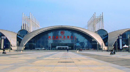 西安曲江国际会展中心是西安市人民政府投资、西安市商贸委共同投资建设的集多种功能为一体的综合性展览活动场所。位于西安市长安南路与水厂路交汇处,西临陕西电视塔、东临西安国际会议中心,中心造型新颖、外观宏伟,展馆主体外观造型似鲲鹏展翅,隐喻西安城市经济建设的腾飞。拥有先进的硬件设备及富于现代感的中心广场,具有承办国际博览会、全国性经贸洽谈会的能力。